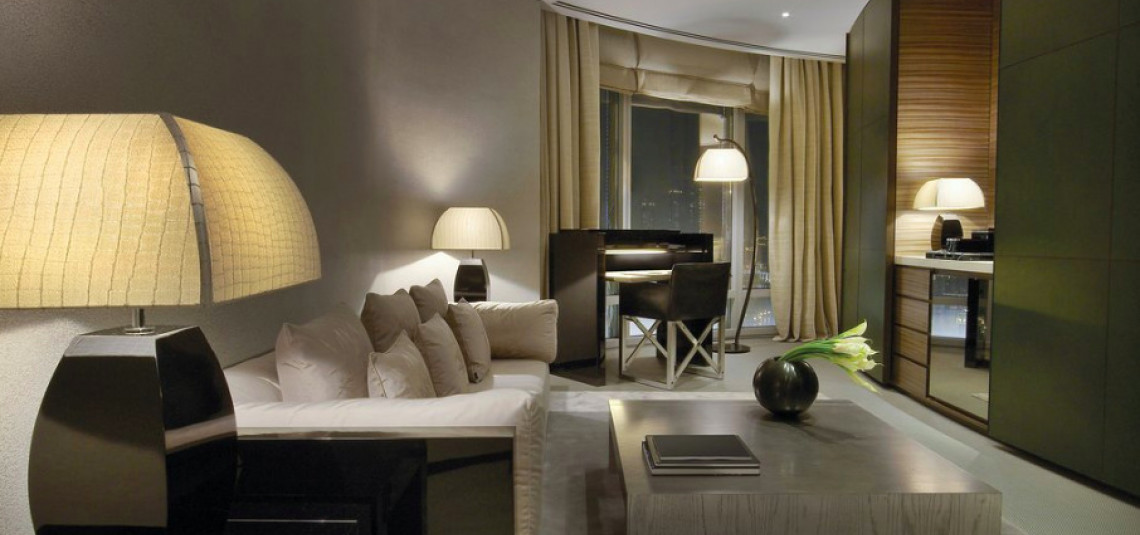 Riservato a pochi fortunati, L´Armani Hotel Dubai è caratterizzato da sontuose suite (con un prezzo indicativo attorno ai 10.000 euro a notte a notte), cifra dovuta agli standard qualitativi ai massimi livelli. Tonalità scure, materiali preziosi e naturali con molto uso di legni preziosi, complementi d´arredo impreziositi da pelle e naturalmente tecnologia d´avanguardia.