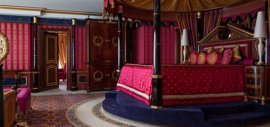 Gli interni sono stati caratterizzati da finiture che mettono in risalto lo sfarzo tipico della cultura araba, con ampio utilizzo di mosaici, specchi, decorazioni geometriche policrome e stilemi architettonici tipicamente arabi.