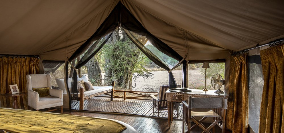 Immerso lungo le sponde del fiume Jongomero, il lodge si fonde perfettamente con l’ambiente circostante. Le tende-suite, spaziose e raffinate, offrono un equilibrio perfetto tra comfort e natura: verande private affacciate sulla savana, interni eleganti che richiamano lo stile coloniale e tutti i servizi necessari per vivere un soggiorno di totale relax, senza rinunciare all’avventura.