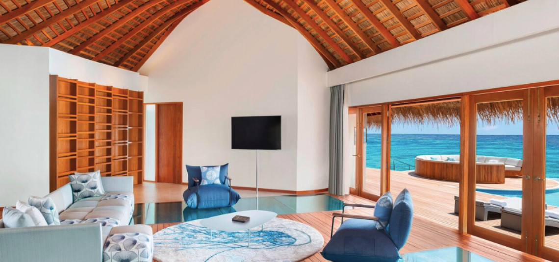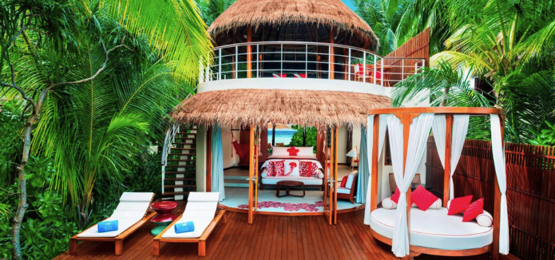 W Maldives vanta una grande e splendida laguna lambita da spiagge davvero da sogno. Le 78 ville si distinguono in 28 Beach Oasis (di ben 188 mq.) situate sulla spiaggia, 46 Ocean Oasis (da 145 mq) poste direttamente nella laguna (con una sezione del pavimento del soggiorno in vetro) e infine 3 ville Seascape Escape in posizione molto suggestiva (da ben 328 mq.). Per chi non ha davvero limiti e ama "esagerare" o regalarsi una luna di miele da sogno c´è poi una stupefacente suite sull’acqua di oltre 490 mq. Tutte le ville sono dotate inoltre, di piscina privata, letti matrimoniali king size, aria condizionata, bagno all’aperto, doccia esterna “effetto pioggia”, vasca, asciugacapelli, cassaforte, TV LCD 42’’, lettore CD e DVD, impianto stereo Bose, lettori DVD ed MP3, connessione internet ad alta velocità, telefono, mini bar, wine fridge, bollitore per caffè e tè, barbecue, divano esterno e maggiordomo.