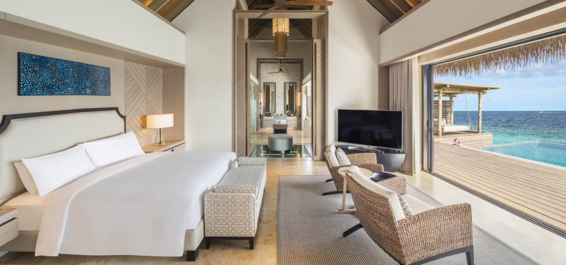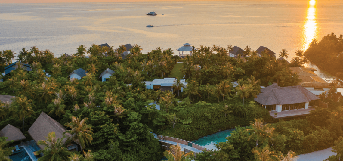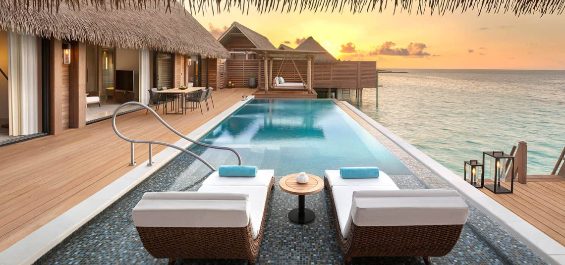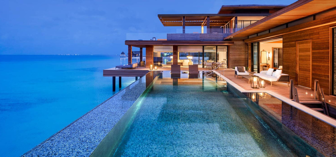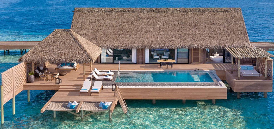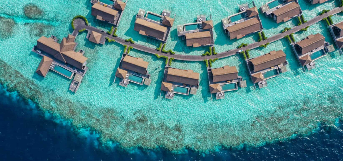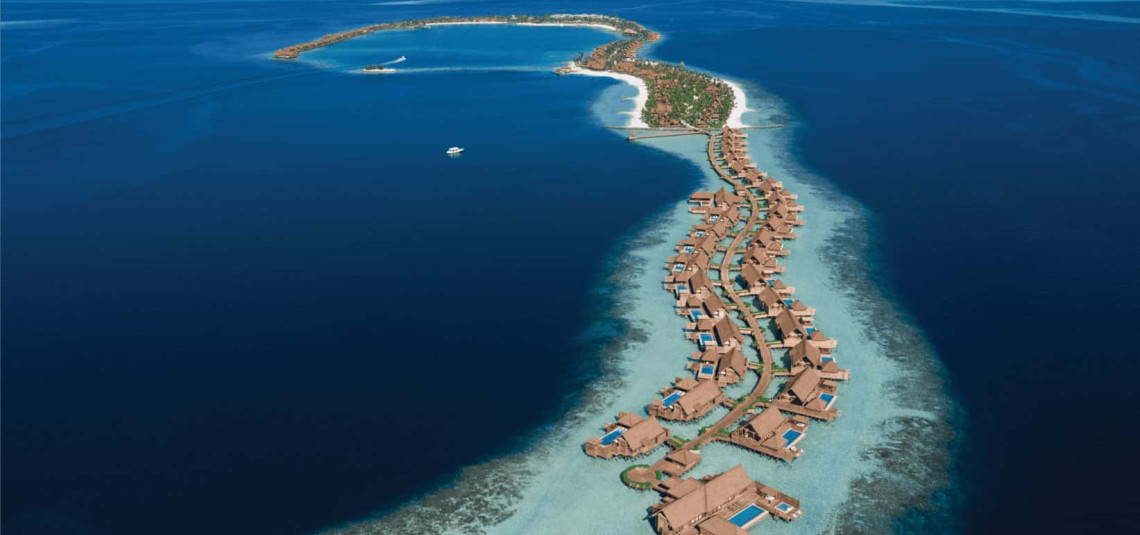 Composto da 119 ville sontuosamente progettate situate sulla spiaggia, sulla barriera corallina o sull'acqua, ciascuna impreziosita da una piscina privata.