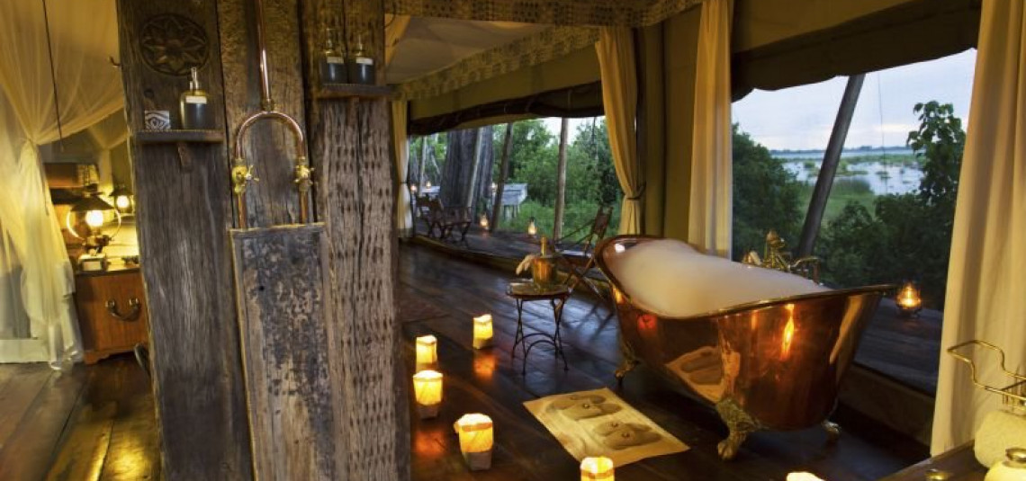 Ogni tenda è suddivisa in 3 locali: Camera da letto, zona bagno, salotto e tenda. Inoltre tutte dispongono di piscina privata e di affacciano su una laguna brulicante di ippopotami ed elefanti.